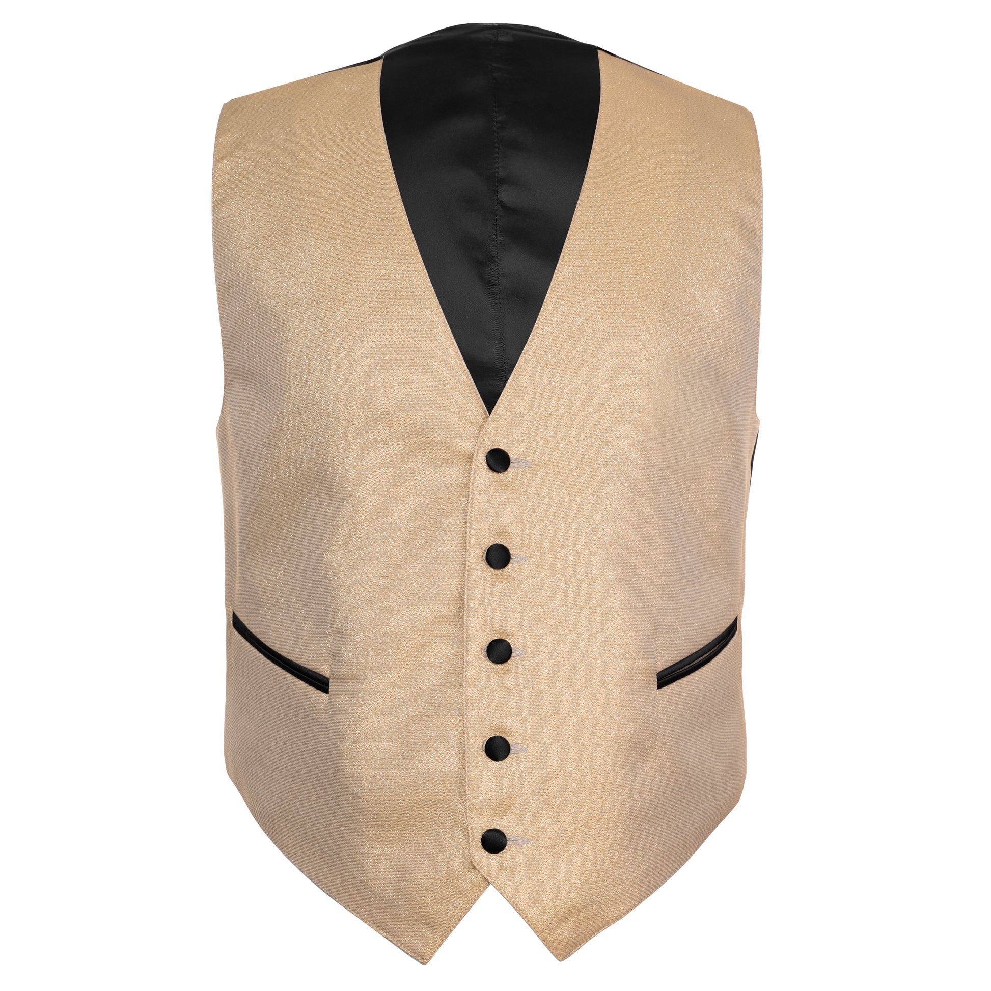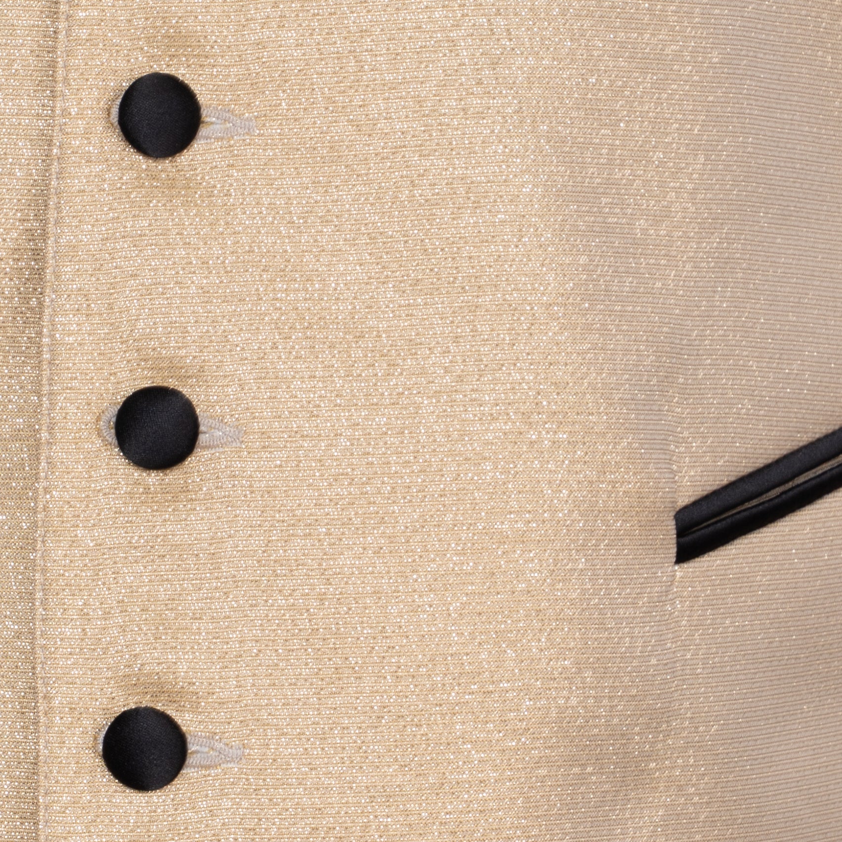 Setzen Sie ein Zeichen von zeitloser Eleganz mit unserer goldschimmernden Herrenweste. Dieses Meisterstück aus unserer Manufaktur ist die perfekte Wahl für den anspruchsvollen Herrn und verleiht jedem festlichen Anlass eine besondere Note. Die Weste kombiniert eine edle, champagnerfarbene Vorderseite mit klassischen schwarzen Akzenten und verkörpert die Sorgfalt und Schneiderkunst, für die unser Haus seit 1876 bekannt ist.