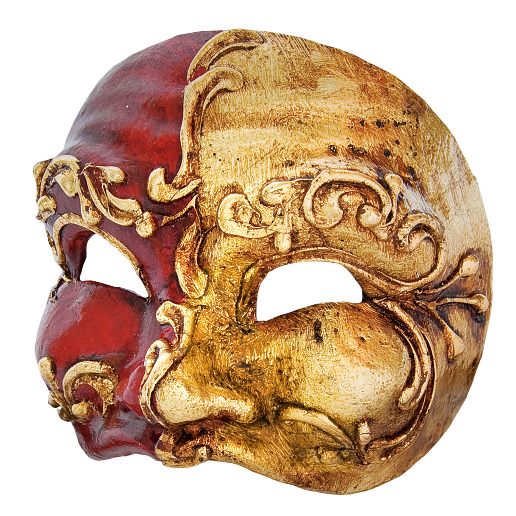 Arlecchino piccolo rosso oro - Venezianische Miniaturmaske