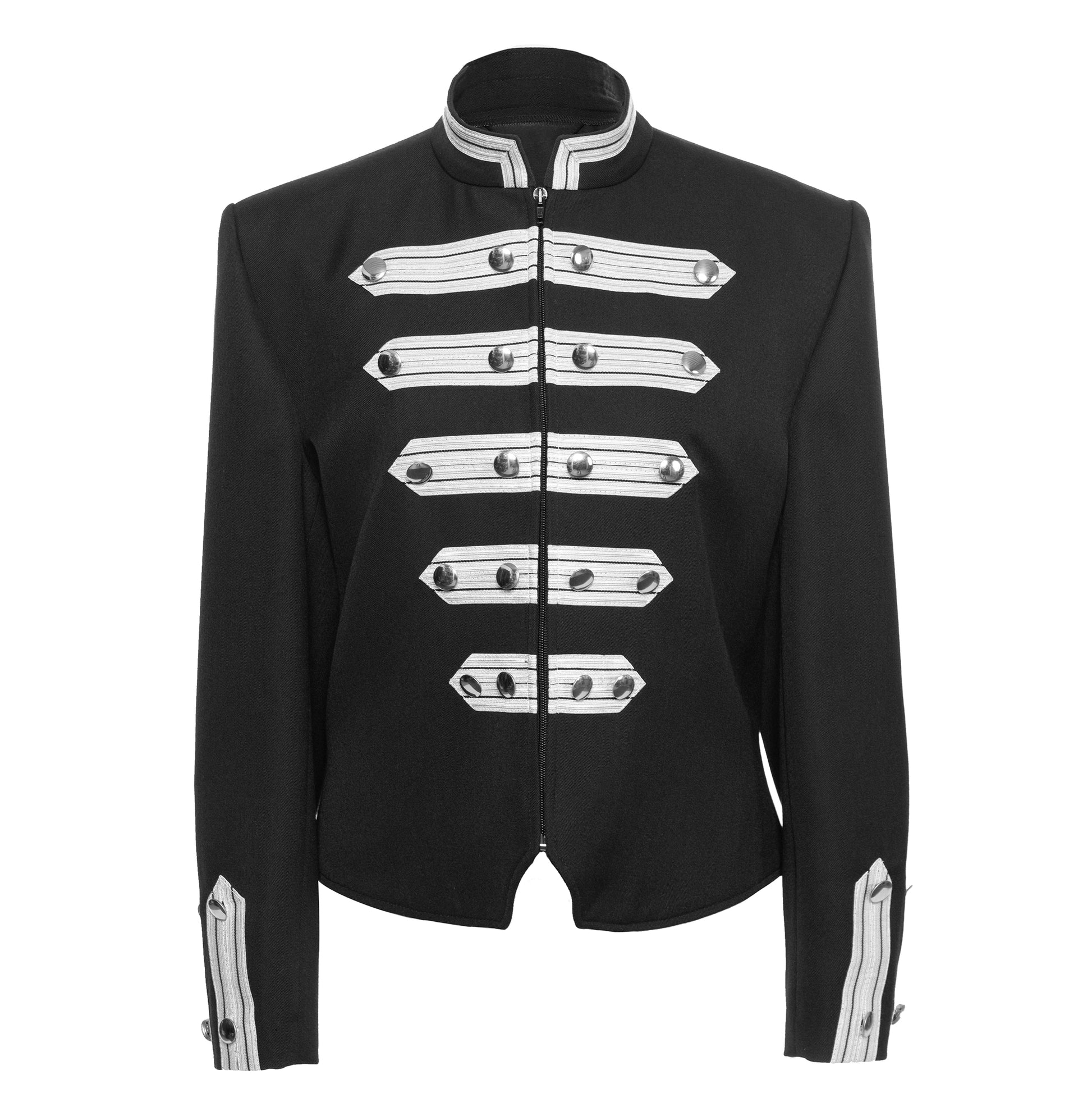 - Verzierung: Klassische Husaren-Verschnürung mit Zierlitzen und 24 silbernen Zierknöpfen