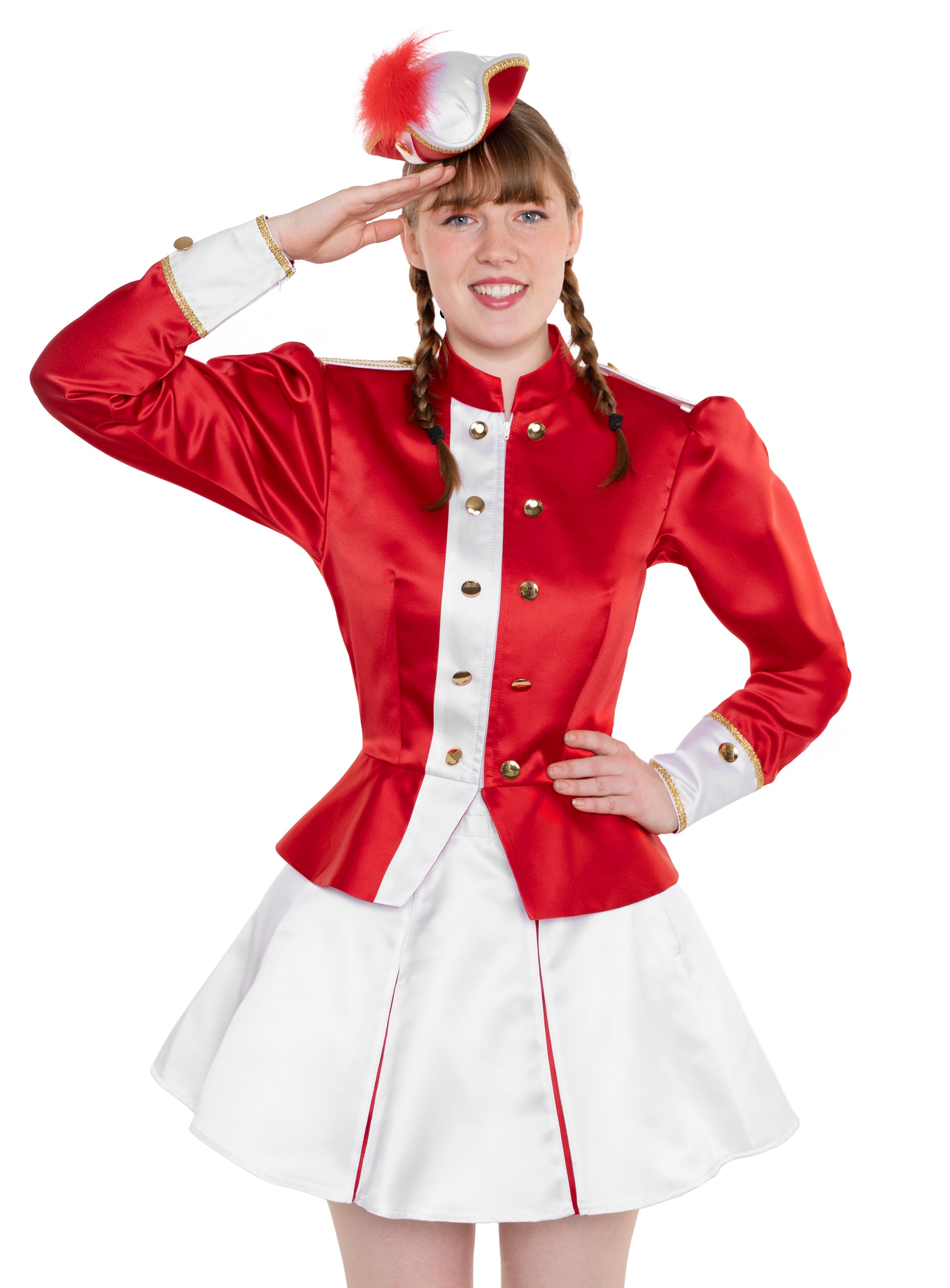Gardekleid mit roter Uniformjacke und weißrotem Rock