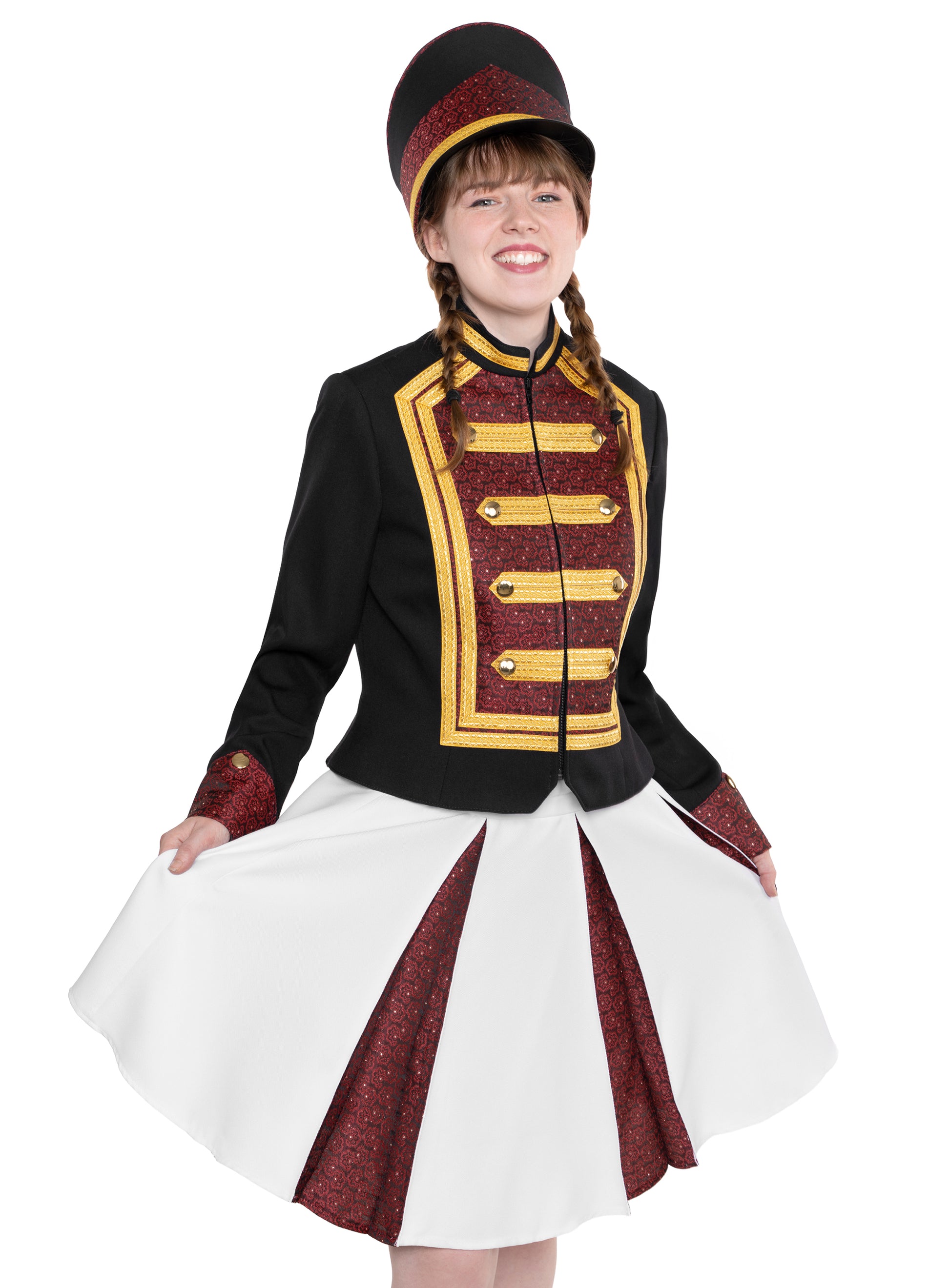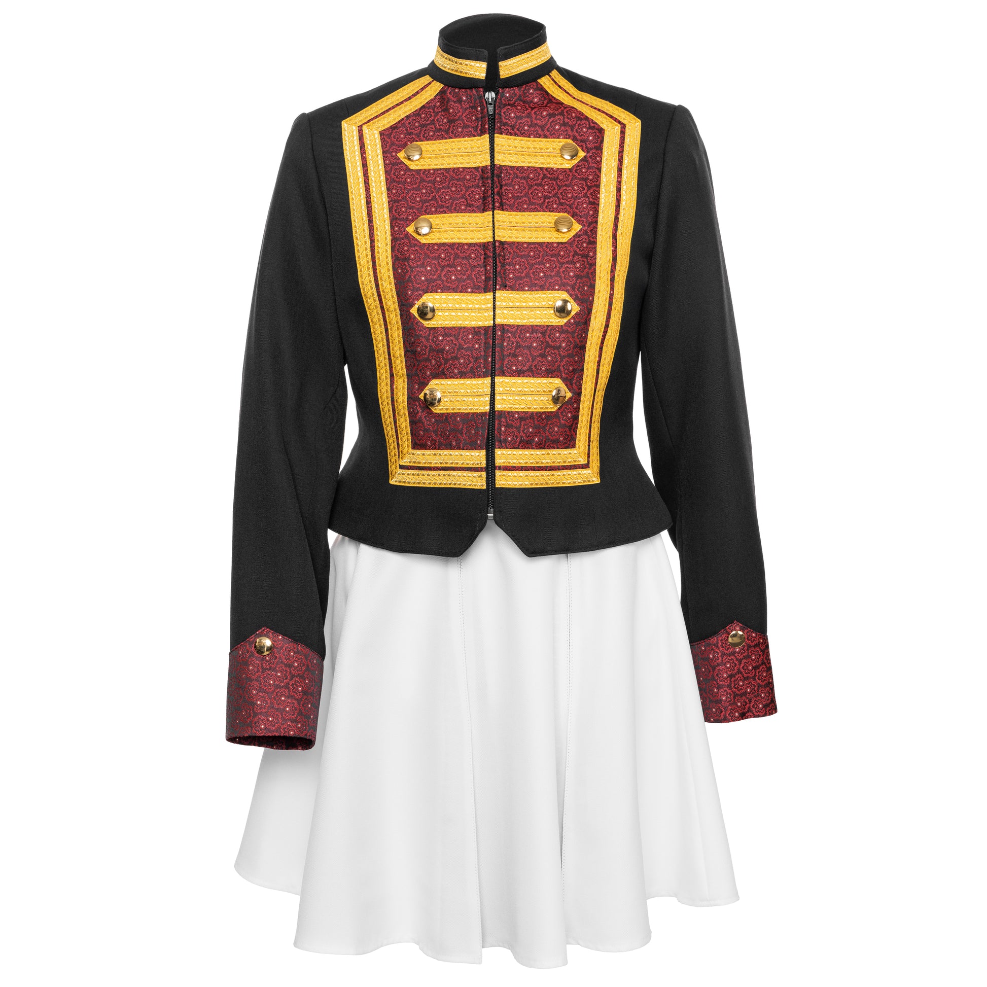 Dieses zweiteilige Garde-Kleid ist der Inbegriff von Anmut und Disziplin, den der Gardetanz wie kein zweiter Sport verkörpert. Es wurde in unserer Manufaktur entworfen, um auf der Bühne einen unvergesslichen Eindruck zu hinterlassen und gleichzeitig den hohen athletischen Anforderungen der Tänzerinnen gerecht zu werden. Die Kombination aus einer prunkvoll verzierten, militärisch anmutenden Jacke und einem schlichten, aber wirkungsvollen Tanzrock schafft eine spannende und harmonische Silhouette.
