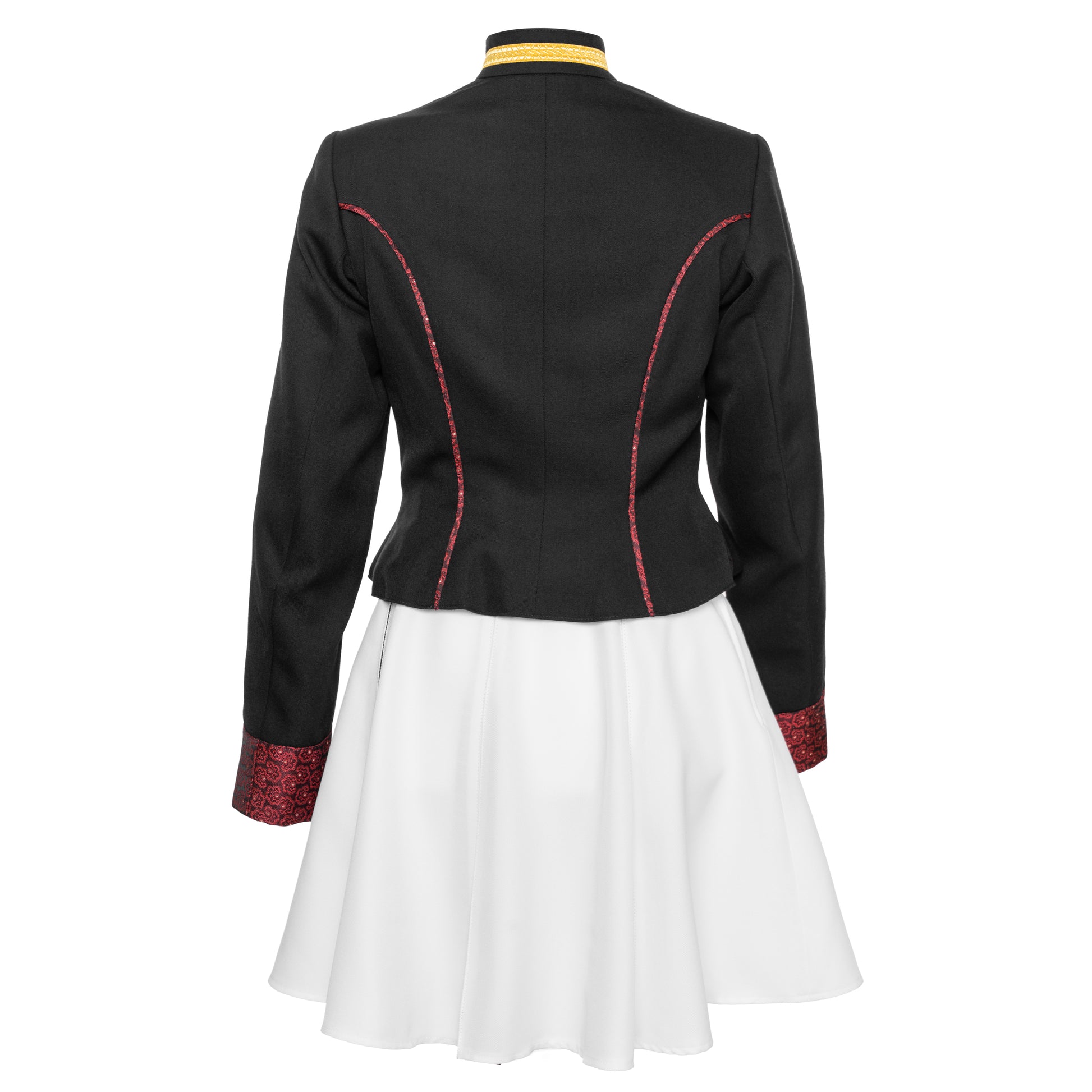 Gardekleid mit Schwarz-Roter Uniformjacke - mit weißen Rock und roten Godets