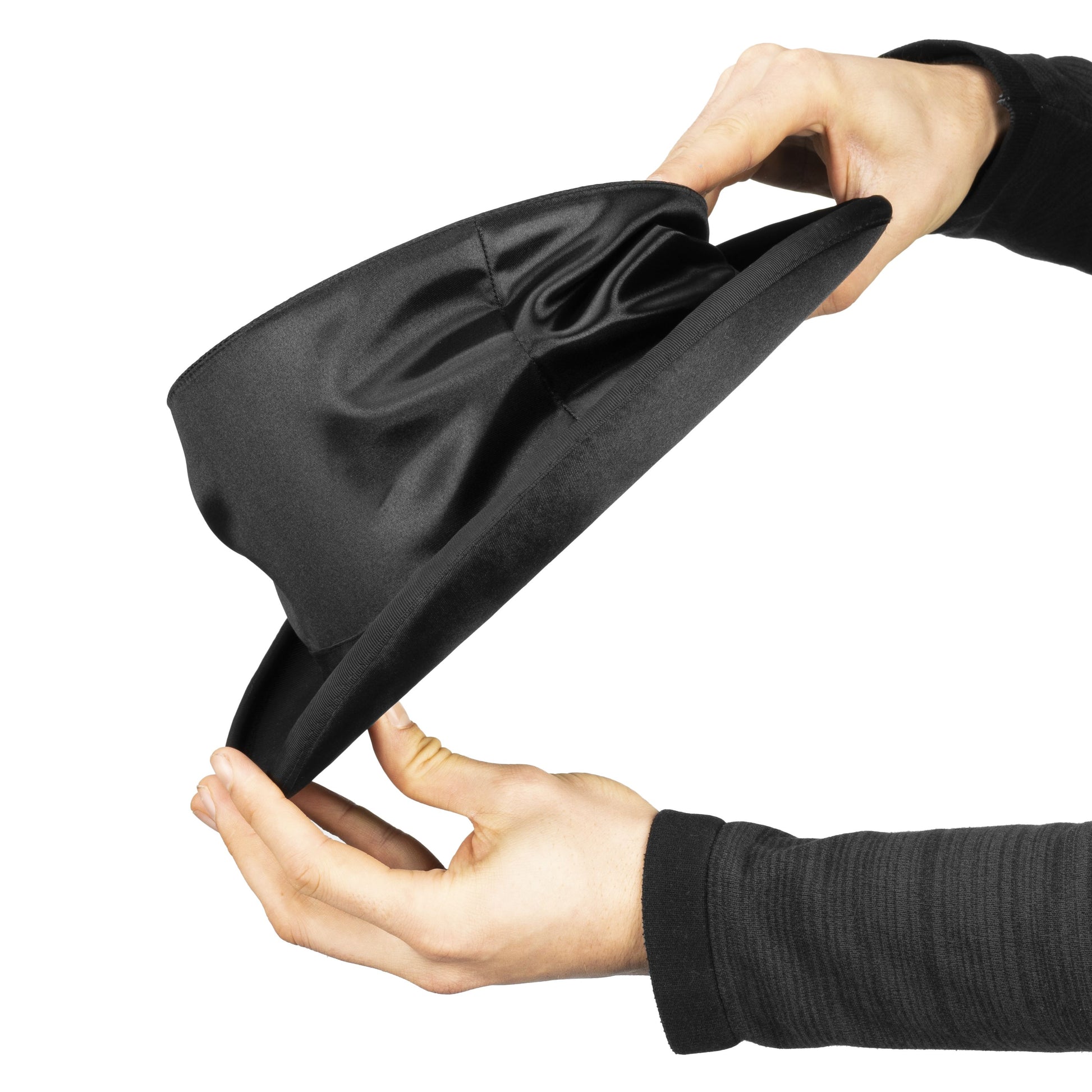 Erfunden und patentiert im frühen 19. Jahrhundert (oft assoziiert mit dem Pariser Hutmacher Antoine Gibus in den 1830ern), war der Chapeau Claque die geniale Lösung für das Platzproblem des Zylinders bei Abendveranstaltungen. Mit einem einfachen Mechanismus aus Federn und Scharnieren ließ sich der Hut flach zusammenfalten – mit einem charakteristischen "Klick" oder "Claque" – und ebenso schnell wieder auf seine volle Form aufklappen. Er konnte bequem unter dem Sitz verstaut oder diskret unter dem Arm getragen werden, ohne die Eleganz des Trägers zu mindern.