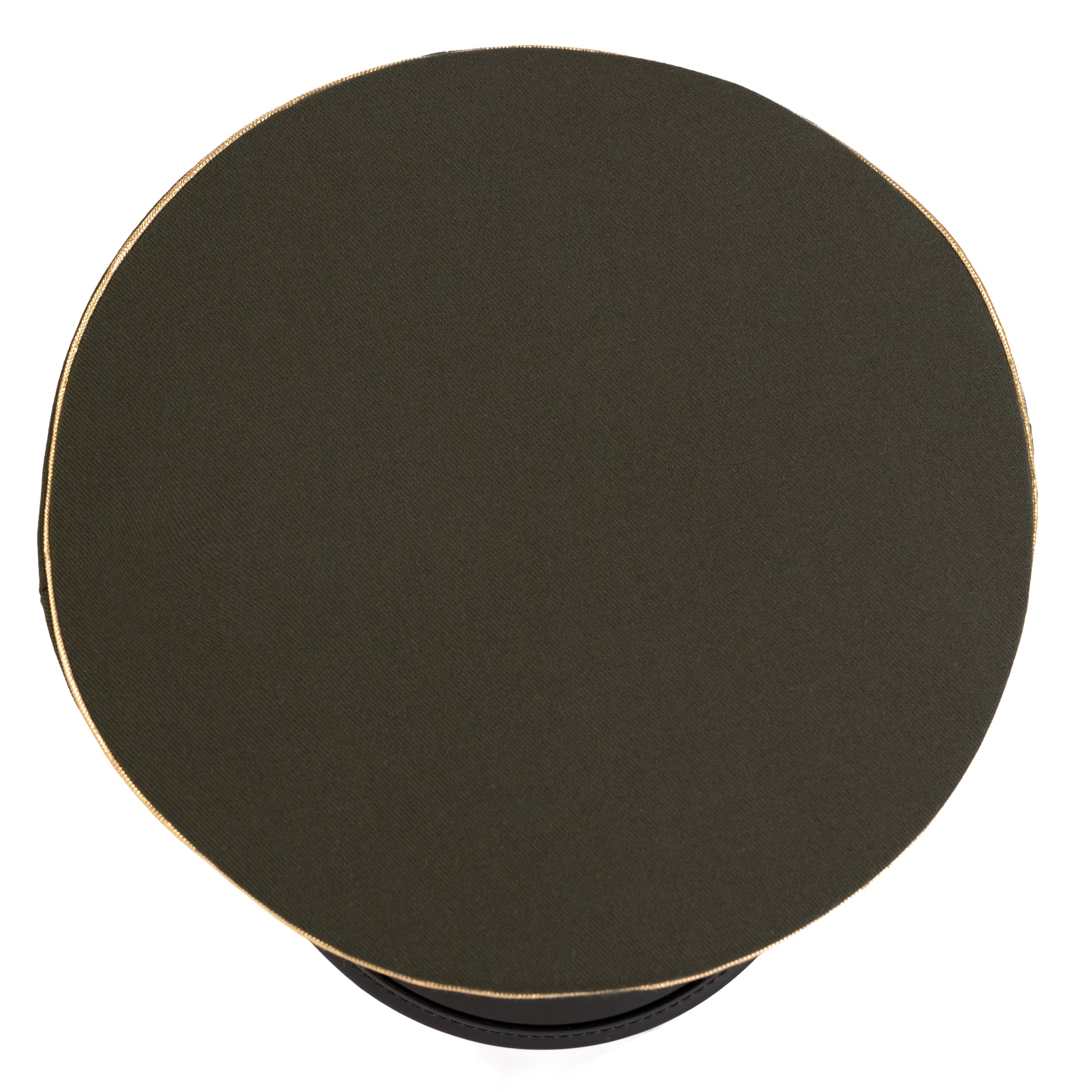 - Exquisites Design: Die Mütze besticht durch drei feine, umlaufende Paspeln in Gold, die einen eleganten Kontrast zum tiefgrünen Stoff bilden und die klassische Silhouette betonen.
