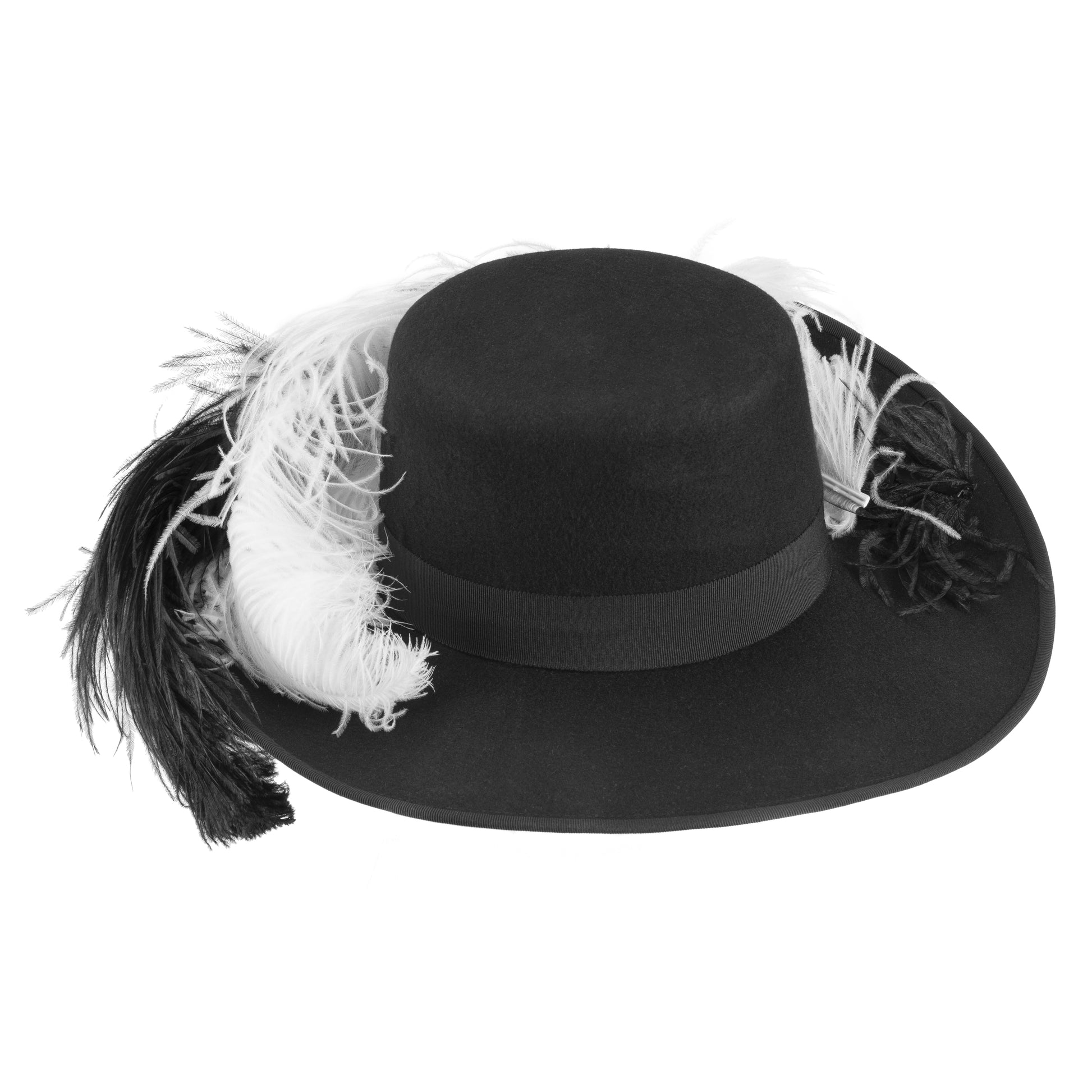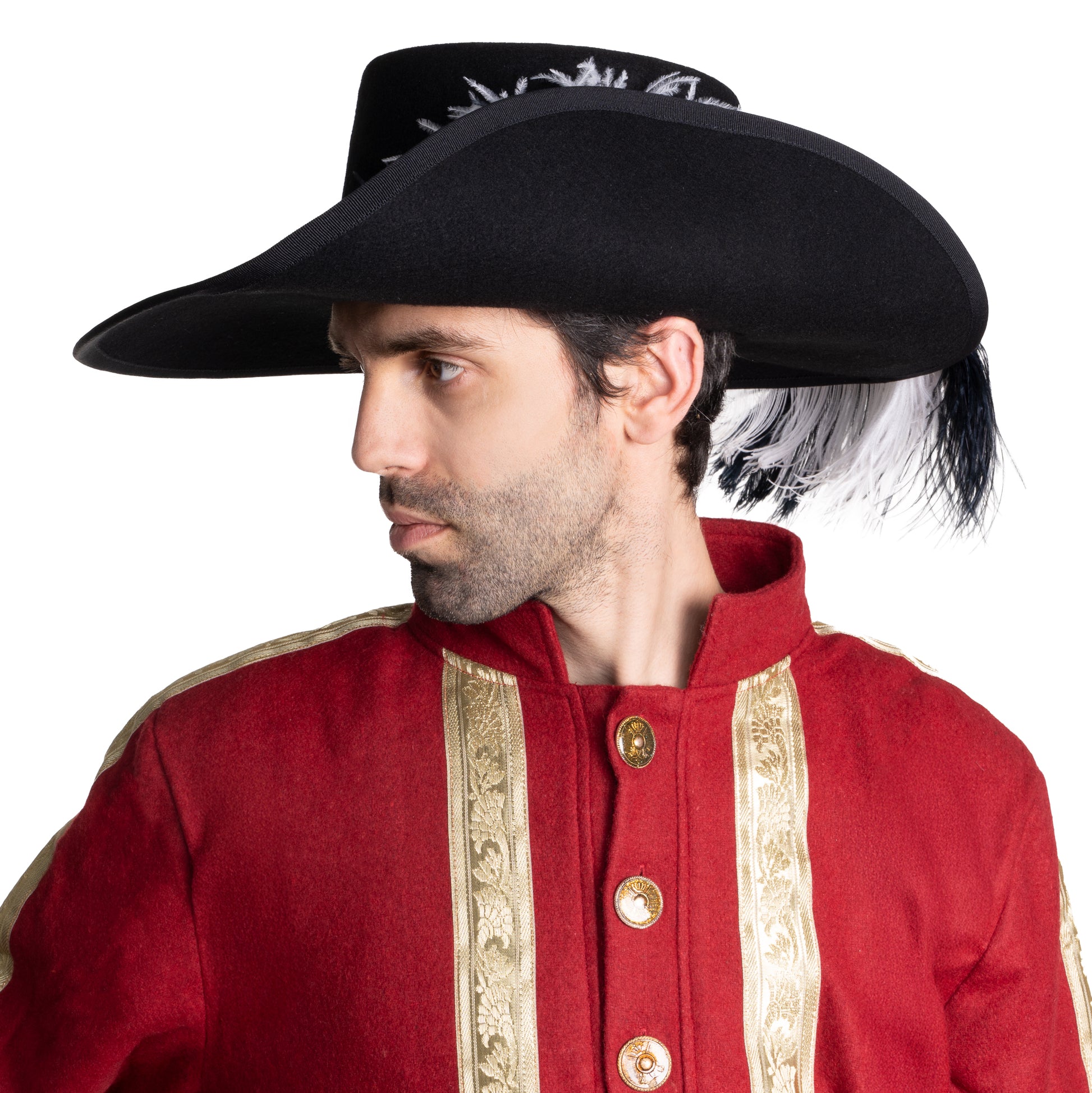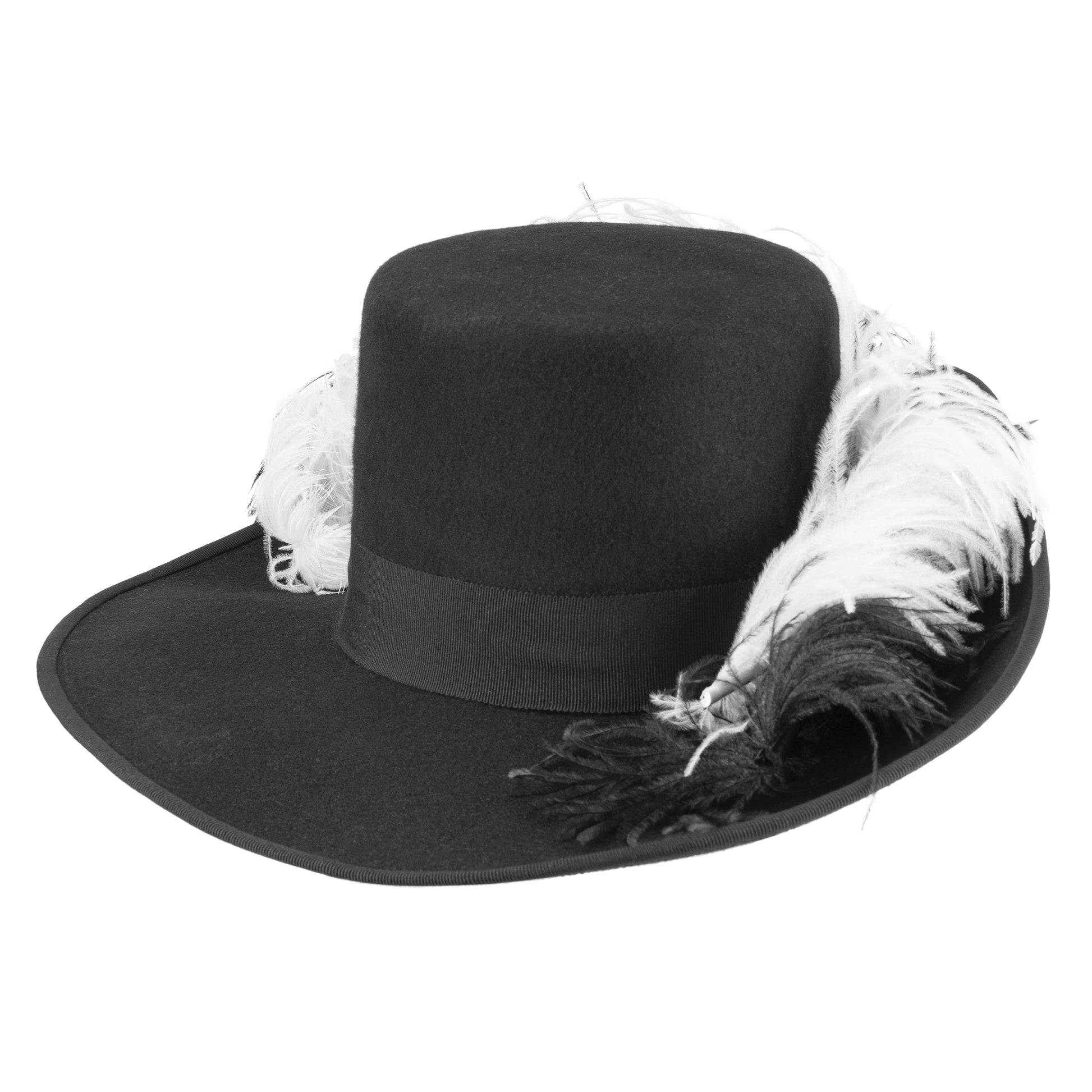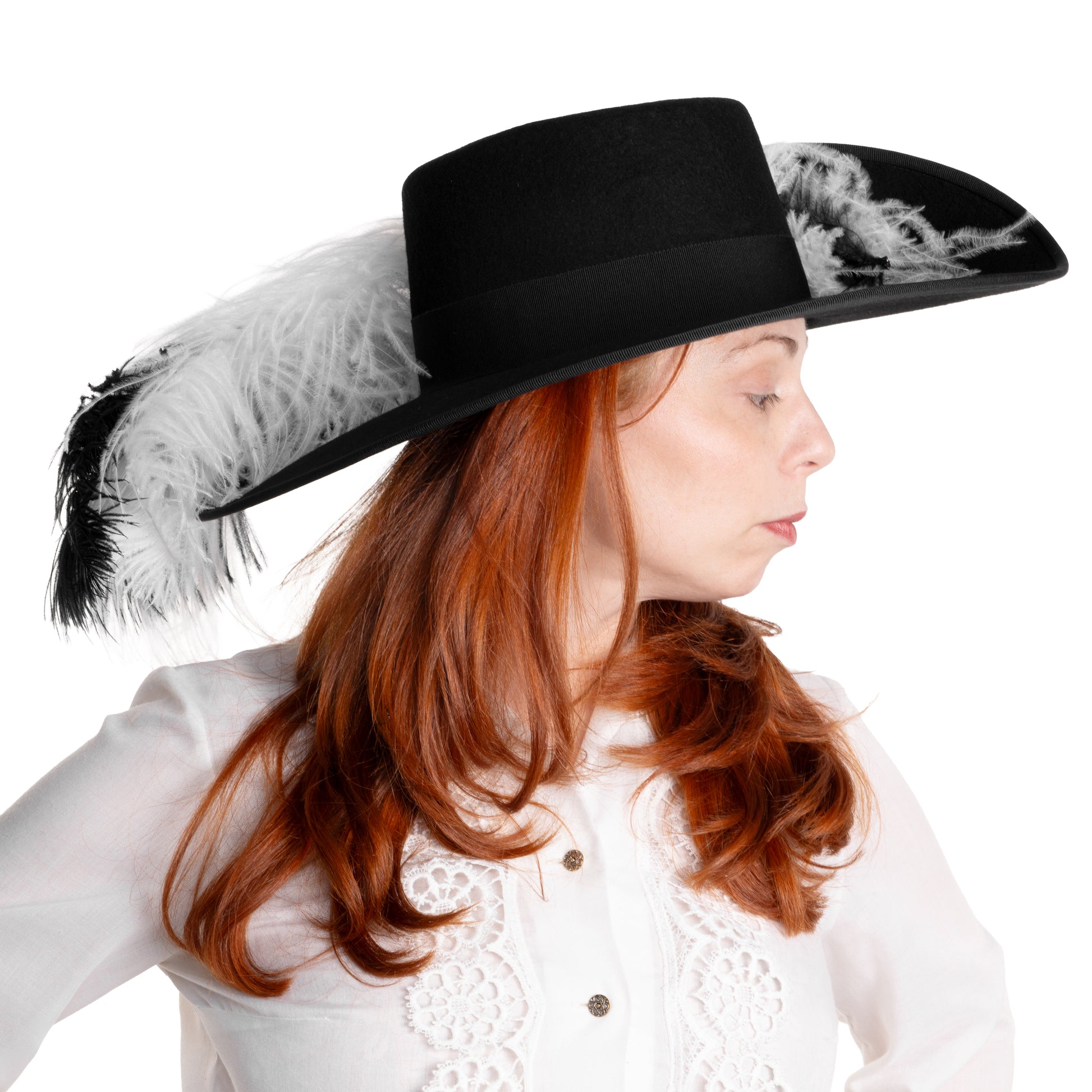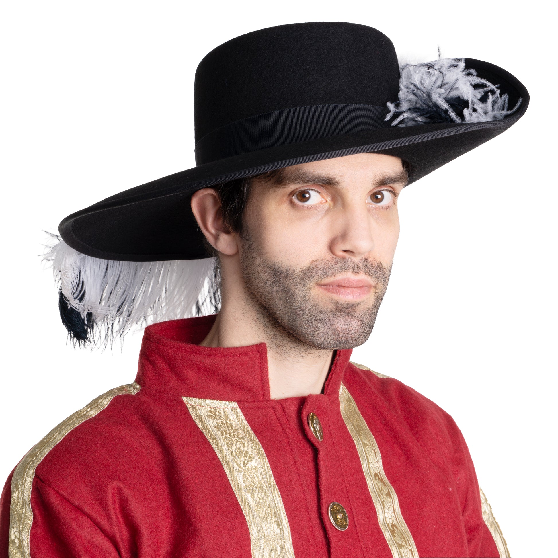 Der Kavaliershut oder Kalabreser mit stolzem Federschmuck gilt als der Inbegriff des Musketierhuts. Aber nicht nur dem französischen Musketier steht dieser Hut gut, auch ein schneidiger Spanier nach dem Vorbild von Alatriste wird an diesem breitkrempigen Hut