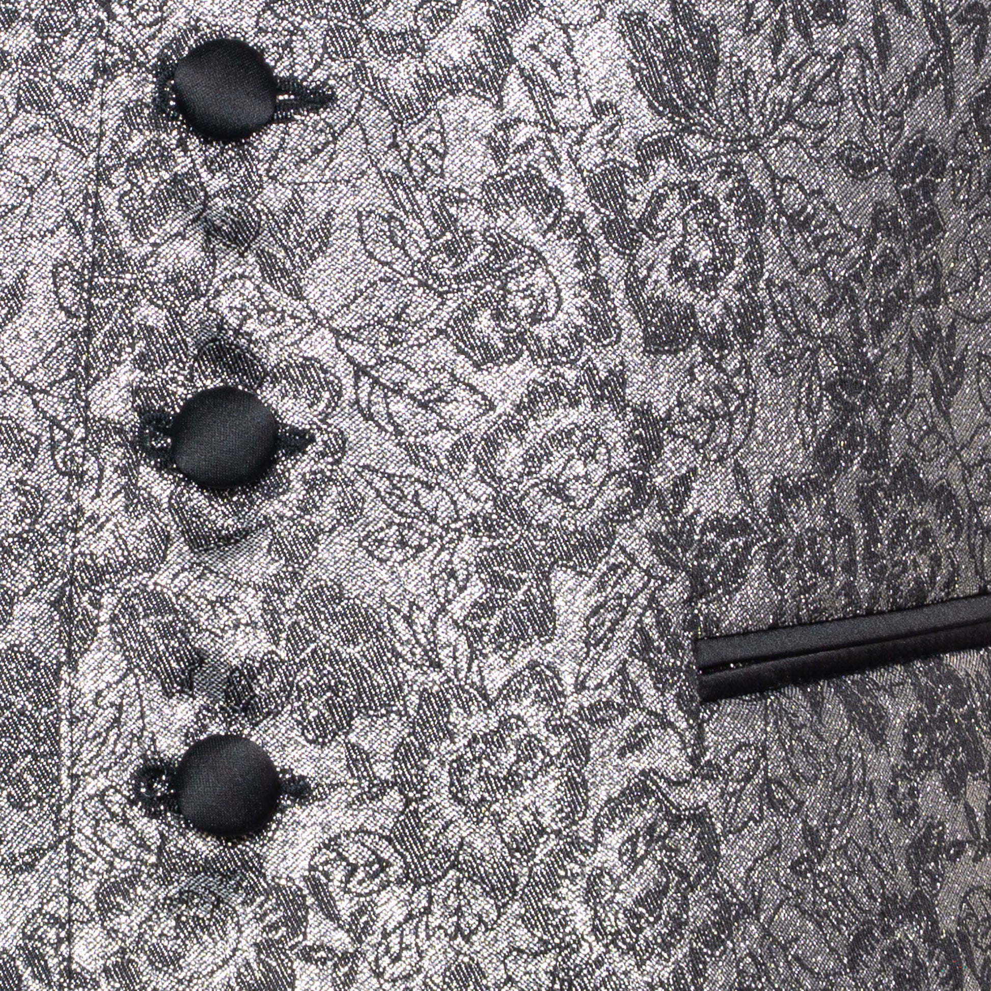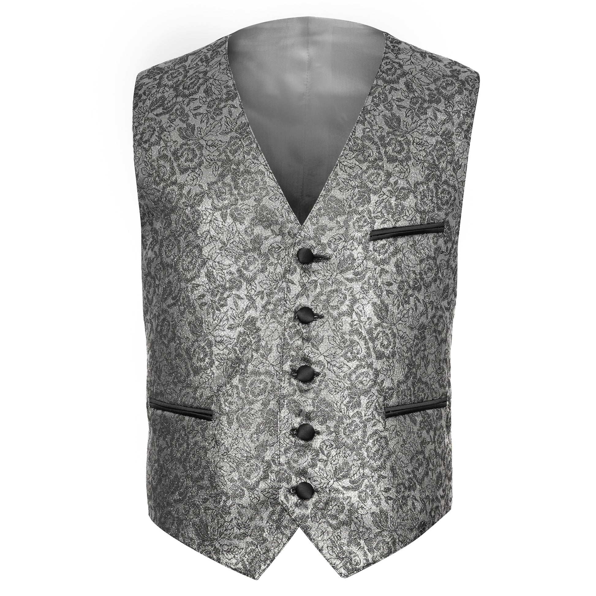 Für den Herrn, der das Besondere sucht und einen unvergesslichen Eindruck hinterlassen möchte, präsentieren wir unsere Prunkweste mit floralem Muster. Dieses opulente Kleidungsstück ist eine Hommage an die große Schneiderkunst und die prachtvollen Stoffe vergangener Epochen, gefertigt mit der Präzision und dem Qualitätsanspruch unseres Hauses seit 1876. Das ausdrucksstarke, floral anmutende Barockmuster in Silber und Schwarz macht diese Weste zu einem wahren Blickfang.